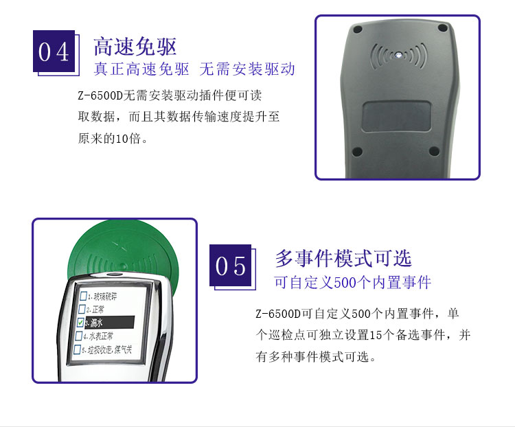 1. 全中文彩屏:中文字库,巡检地点、人员及事件全中文显示
