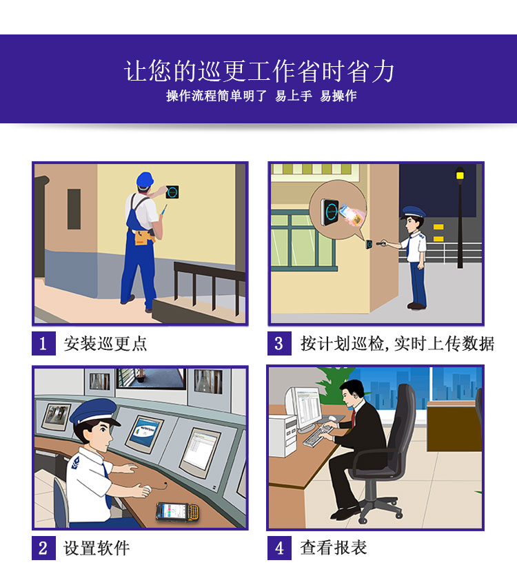 技术参数 外壳结构:工程塑胶外壳,硅胶内胆,超强防水抗摔 屏幕显示:4寸电容式触摸屏,分辨率为800*480 操作系统:Android5.1操作系统,可对接监控、报警平台 CPU:4核 RAM/ROM:2G/16G 外存储量:T-FLASH卡,最大支持32G 防护等级:IP67 指纹识别:半导体指纹识别技术,有效防止代检。系统支持225枚指纹预设(最大1000枚),操作员210枚,管理员15枚。 读卡类型:NFC、ID卡感应读取,二维码扫描读取 线路导航:巡检员可以在巡检仪的“电子地图”板块实时查看自己当前的位置,并根据线路导航提示前往下一个巡检点。 巡检完成率预警:在巡检计划周期结束前一定时间内,巡检完成率达不到预设要求时,后台软件自动报警,管理者可及时通知巡检员进行巡检。 遇险报警:巡检时遇到紧急特殊状况,可一键报警求救 数据采集:每个巡检点下可自定义设置巡检项目(可升级为4级菜单) 项目编辑:巡检员在巡检过程中遇到临时突发情况,可通过项目编辑功能记录备注 通话功能:巡检仪可设置存入10组电话号码,紧急事件可以通过通话功能及时沟通。巡检员只允许对设置好的号码进行呼叫 拍照摄像:前置200万、后置800万像素+闪光灯拍照和视频录制,自动对焦,完美再现巡检现场 照明方式:自带LED照明功能,巡检时无需外带照明设备 实时定位:GPS卫星定位,可在电子地图上实时查看巡检员位置,对巡检员进行实时监管 轨迹回放:可回放、查看指定时间段内巡检员的巡检轨迹,并显示当时巡检信息。 通讯方式:移动/联通/电信4G网络+磁吸式触点USB通讯,高速免驱,运行速度提升达10倍以上 WIFI功能:内置WIFI,可自定义设置WIFI优先或4G网络优先 邮件推送:巡检报表可以以邮件的形式发送给不同的管理者。数据不用电脑也能查看,管理更方便。 远程更新:巡检仪中巡检路线、巡检员及巡检项目信息更新无需连接电脑,可实现远程在线更新 跌摔记录:32000条跌摔记录存储,准确记录机器摔砸时间,减少损坏追责纠纷 支持语言:可支持简体、繁体、英文等多种语言 指令推送:后台管理员可向巡检员实时发送工作指令,实现巡检信息互通,及时解决巡检异常(扩展功能) 外接设备:支持外接测温、测试、测振等设备(扩展功能) 对讲功能:支持网络对讲,可自定义对讲群组,沟通无障碍(扩展功能)
